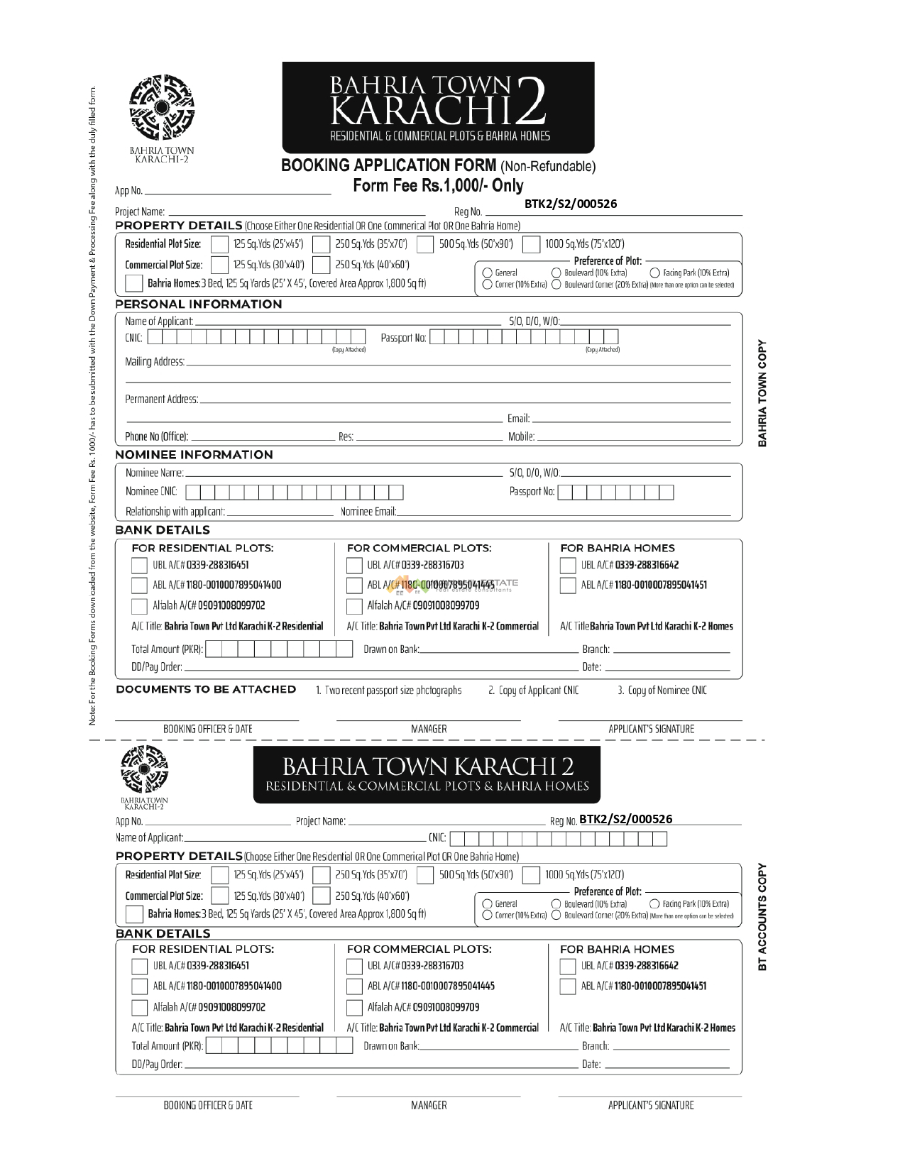 Bahria Town Karachi 2 Booking Forms