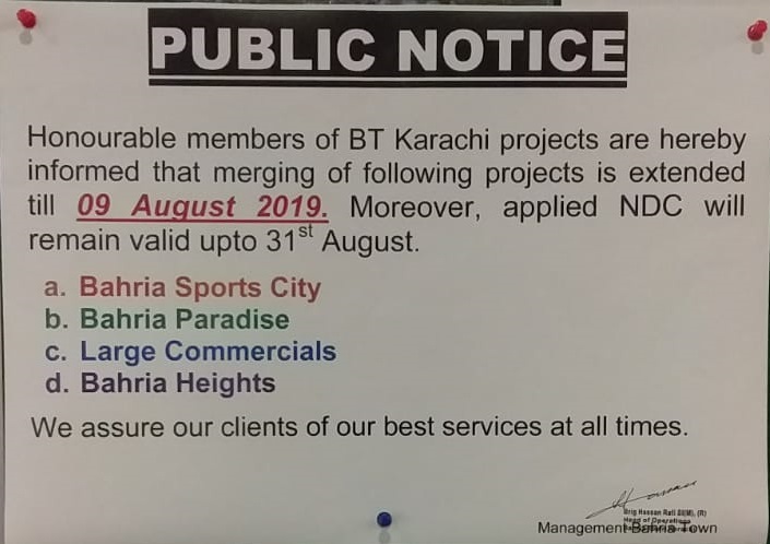 Bahria Town Karachi has rolled out a notification announcing extension in deadline of various merging options. We had shared details of Bahria Sports City and Bahria Paradise merging policy earlier, wherein you could merge paid amount of one file into another file of same block. Similar merging policy was available for Bahria Heights and Commercials, but now this option is being closed by Bahria Town Karachi.