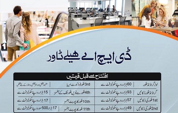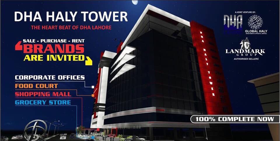 DHA Haly Tower is an exclusive commercial project located at the ideal location of Lalak Jan Chowk, in the heart of DHA Lahore in Phase 1. The project is a joint venture of DHA Lahore and Global Haly Investments Private Limited. The project is 100% complete and bookings are open at introductory prices on first come first served basis.