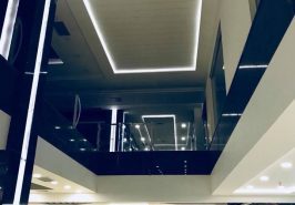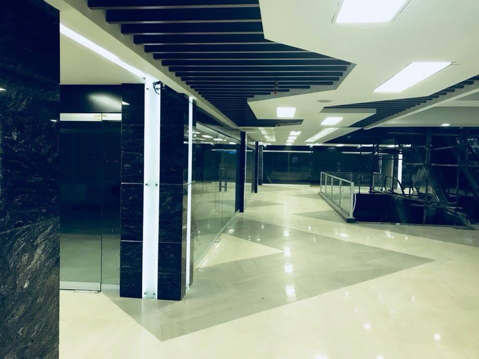 Four basement floors are reserved for car parking. Lower ground floor is reserved for grocery stores. Three floors are reserved for shopping mall i.e. from ground floor up to 2nd floor. 3rd floor is reserved for food court and kids play area. 4th to 11th floors are reserved for corporate offices.