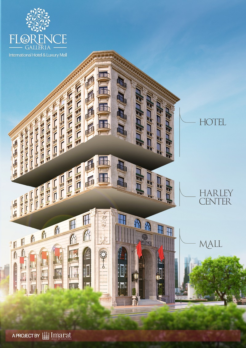Florence Galleria spans over ground + 9 storey tall exquisitely designed building. It offers a variety of investment options including indoor shopping mall in lower floors, health & beauty clinics in the middle, and 4 star hotel suites on the upper floors.