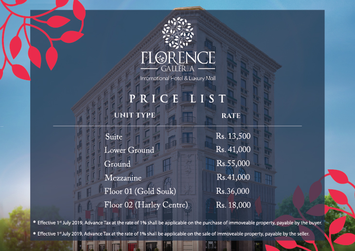 Florence Galleria is a unique commercial project sponsored by Imarat Group of Companies in DHA Phase 2 Islamabad. The project comprises an indoor shopping mall, health clinics and 4 star hotel suites, hence it is purely a commercial project with high return potential. Pre-launch bookings are open now at introductory prices, so it is a good investment opportunity for guaranteed future returns.