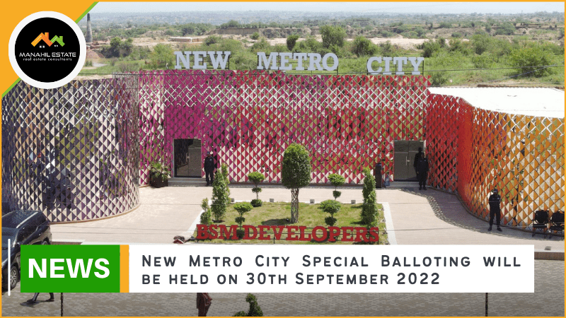 According to officials of society, a 30% new quota is specified by New Metro City in A Block in the pleasure of obtaining NOC (No Objection Certificate) and LOP (Preliminary Planning Permission) from Rawalpindi Development Authority. This quota will be used to facilitate the remaining members. New Metro City special balloting will be held on 30th September. Members are advised to submit their open files till 29 September 2022 to become eligible for this upcoming balloting.