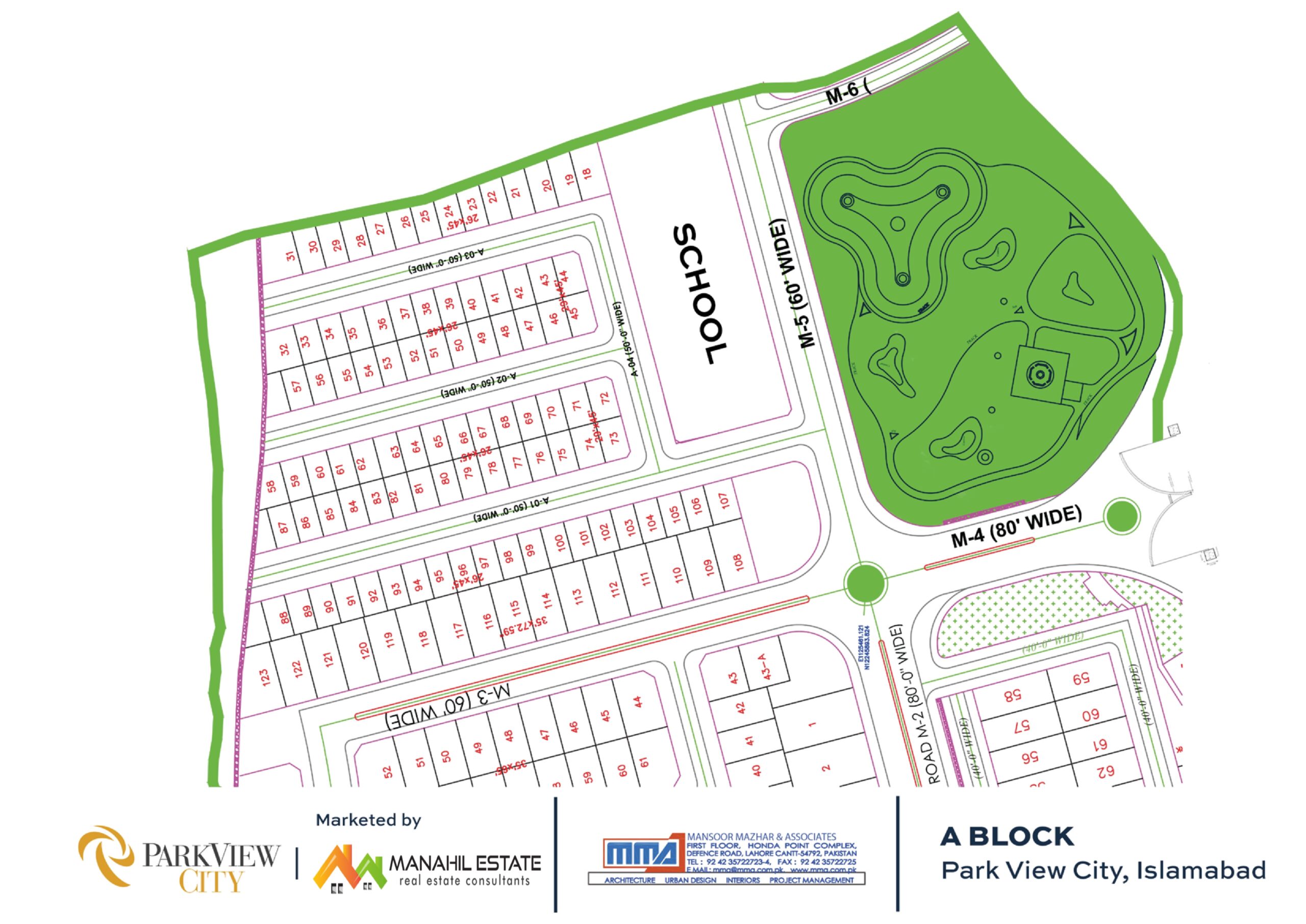 This block mainly comprises 3.5 marla residential plots. There is not specific location assigned to this block yet, therefore its prices are low. It is the only low cost option available in Park View City Islamabad.