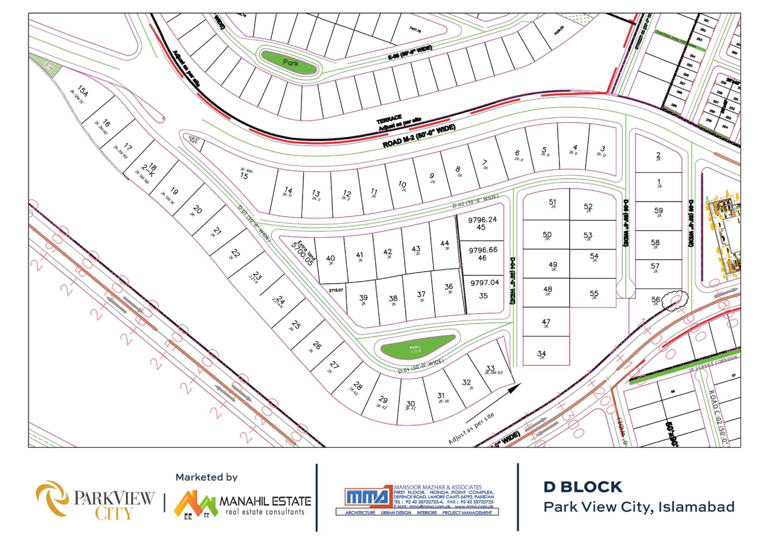 This is the most elevated block of Park View City. Block D offers residential plots of 2 Kanal. This block offers a majestic view of the society and federal capital.