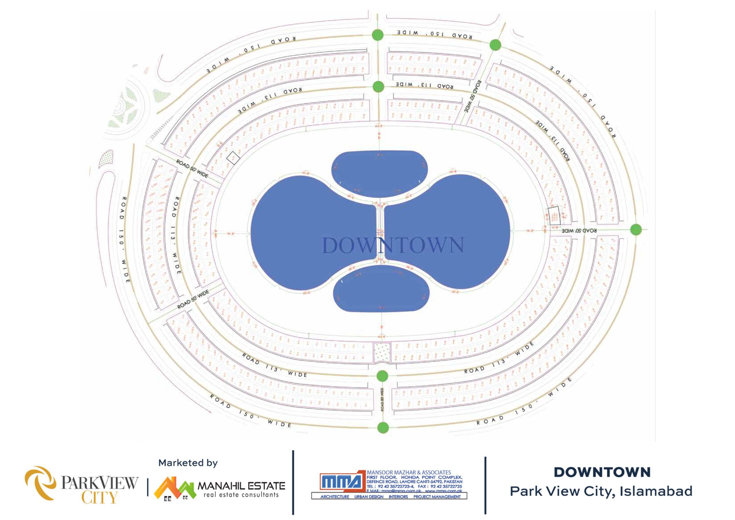 The main boulevard is 200 ft wide for convenient flow of traffic with green belts along the road creating a beautiful atmosphere. Other internal roads and streets are also much wider and embellished with green belts.