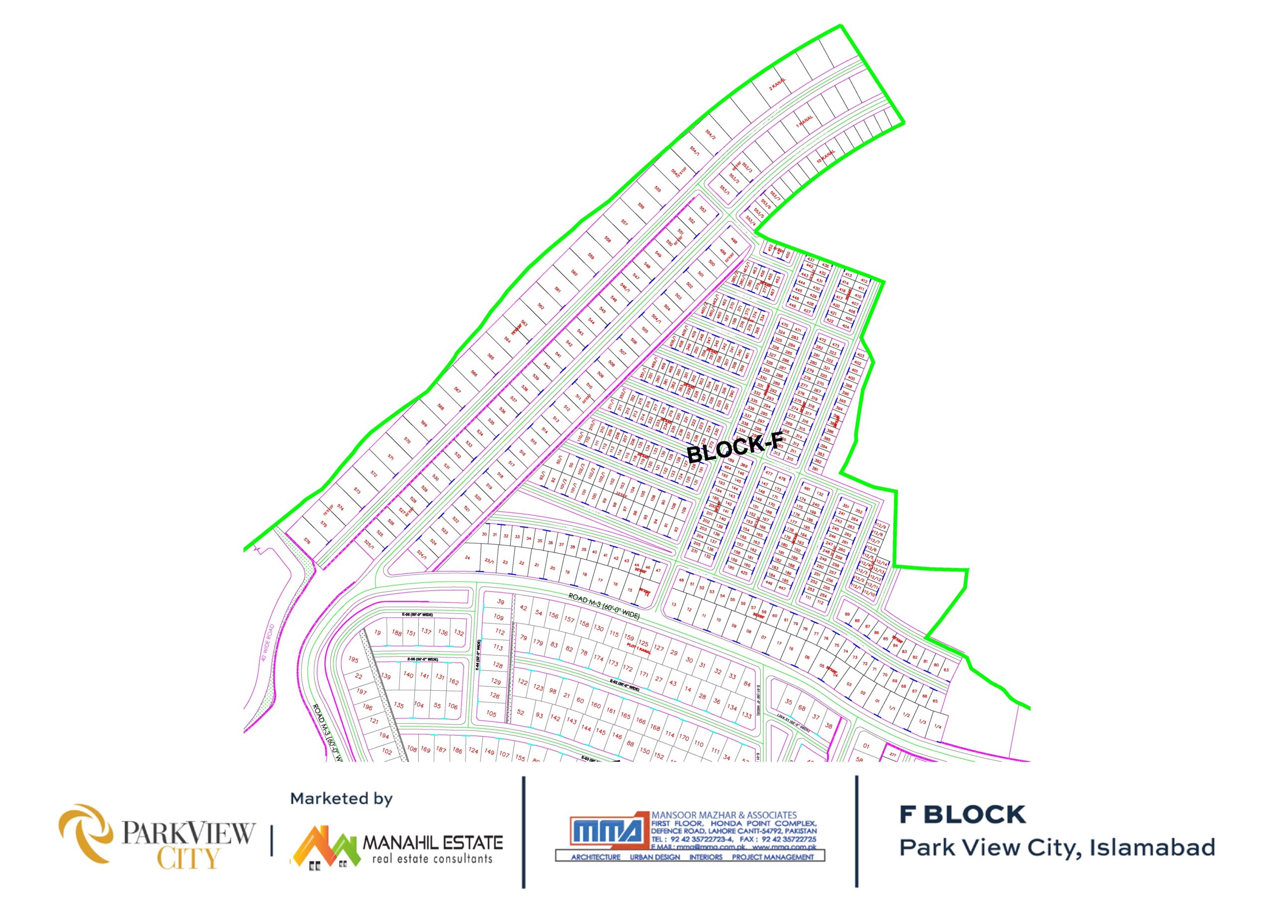 Following are the latest maps of all blocks (excluding Overseas & Golf Estate) of Park View City Islamabad: