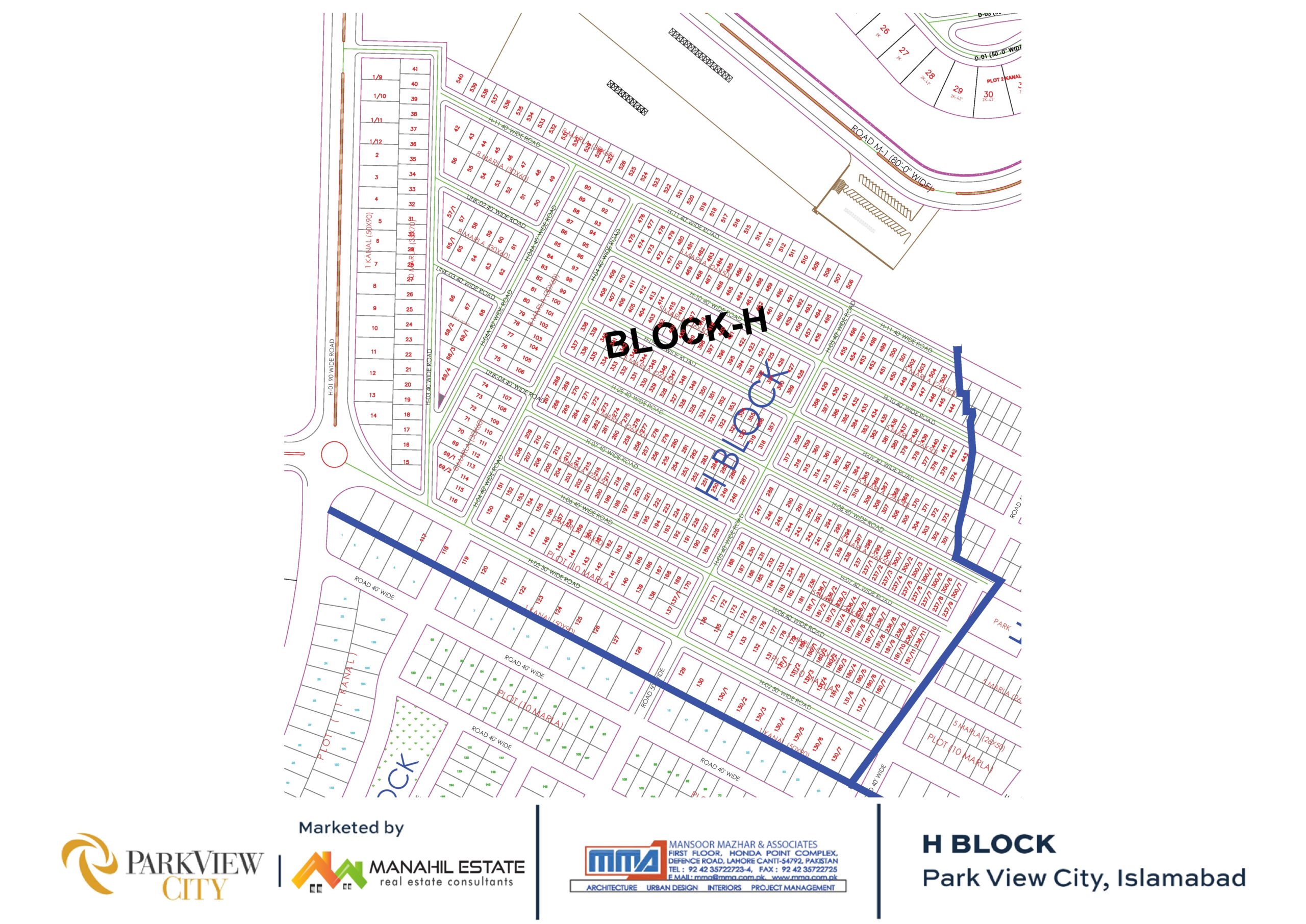 H block is ideally placed right close to the main entrance area and downtown commercial. This block is fully developed and ready for construction. It is also considered to be one of the most expensive blocks in Park View City Islamabad.