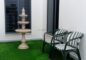 Central green space with water feature for cross ventilation including lush green lawn with flowers plants.