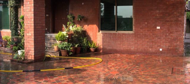 This is a three storey house with built up area of about 7000 sqft with its back open for good ventilation.