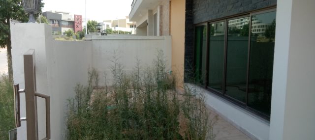 We have a beautiful brand new double storey house for sale in Sector H, Bahria Town Phase 8, Rawalpindi. It has an excellent location right at the entrance of Sector H in Street 3, and it has about 1 marla extra land included in the built-up area.