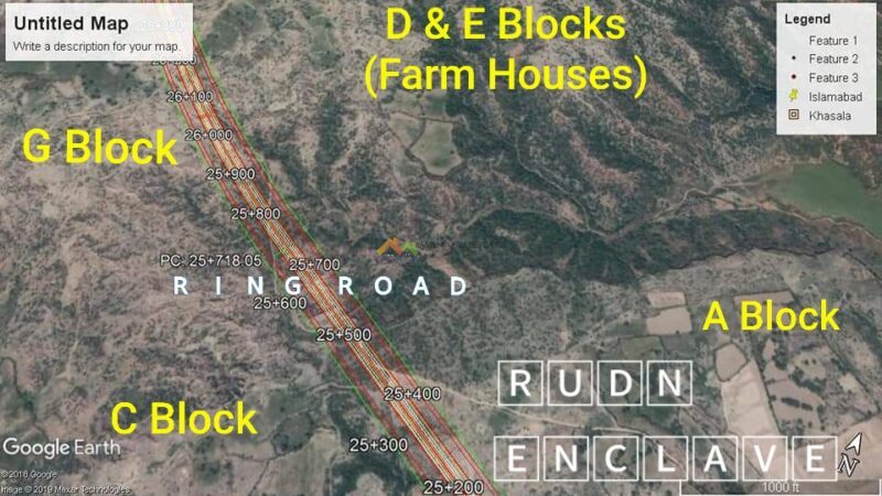 Rudn Enclave is an eco-friendly and healthy housing project . This project has a DAM view and beautiful natural surroundings . Rudn Enclave situated at prime location of RING Road (CPEC ROUTE) at main Adiala Road adjacent to DHA phase 4 ‘ Bahria Town phase 8 extension & Bahria phase 9 . Easy assess to Motorway ( Chakri Road & Thalian interchange) and new islamabad airport. All amenities are availabile at doorstep of RUDN Enclave. One of the unique project due to the fact that started booking after 25% development work was already completed at the site.
