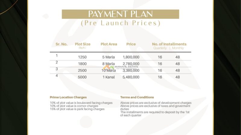 The project is currently being offered at pre-launch prices, however the prices will be revised from time to time. Development work on the project will be inaugurated within 3 Months InshaaAllah and the project is scheduled to be completed and handed over by 2025