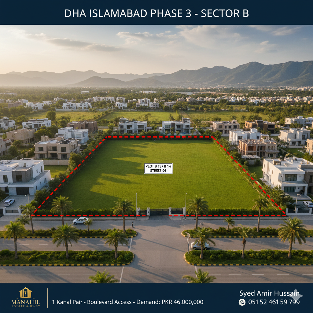 Exclusive 1 Kanal Pair (B 13 & 14) for Sale – DHA Islamabad Phase 3, Sector B