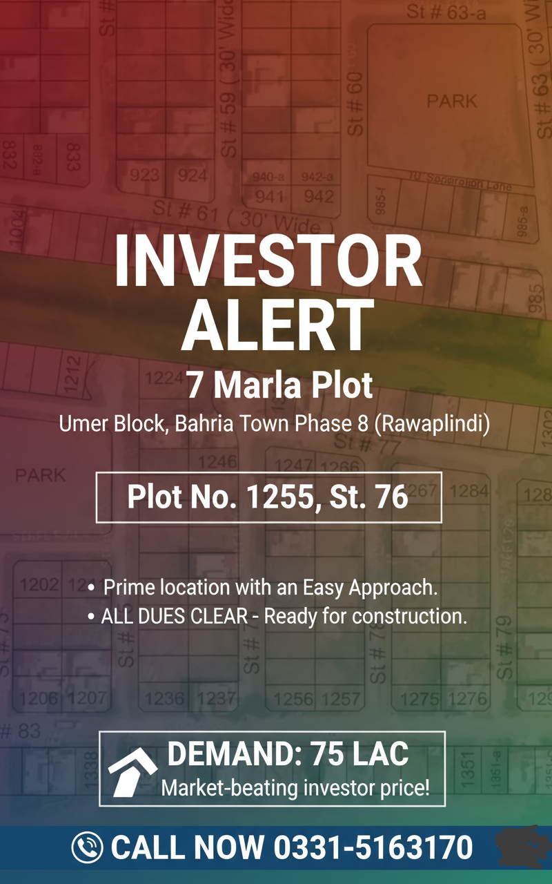 7 Marla Plot – Umer Block, Bahria Town Phase 8 (Rawalpindi)