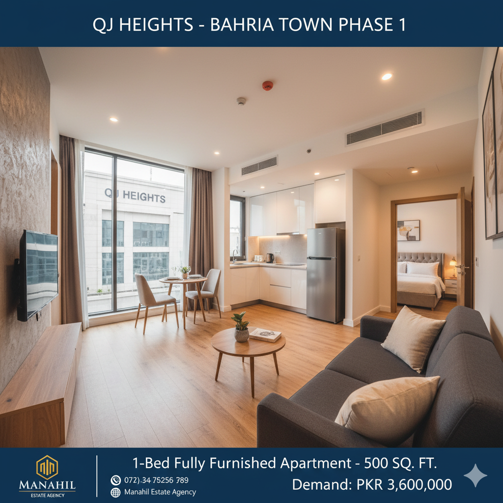 Turn-Key Investment: 1-Bed Fully Furnished Apartment for Sale – QJ Heights, Bahria Town Phase 1