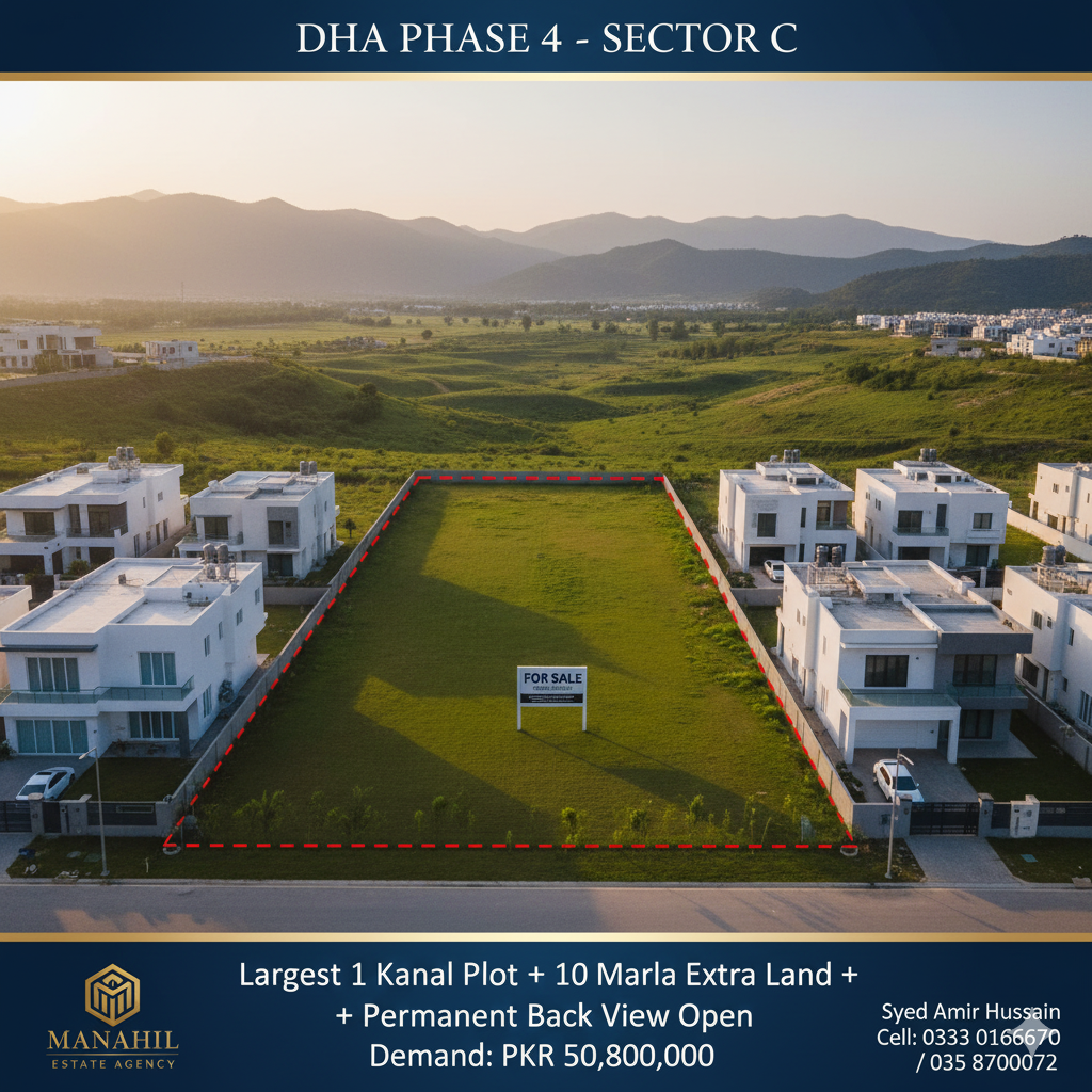 Unrivaled Luxury: Largest 1 Kanal Plot with 10 Marla Extra Land – DHA Phase 4, Sector C
