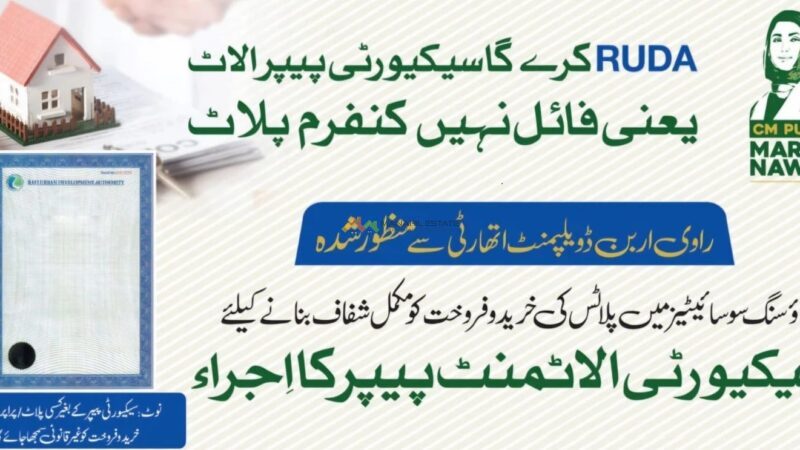 The general public is advised to obtain the security allotment paper when purchasing any property or plot in any RUDA-approved housing society. This practice will help eliminate the file system, a major cause of property fraud. Any allotment letter not issued on RUDA security paper will be invalid and unacceptable for transfers.