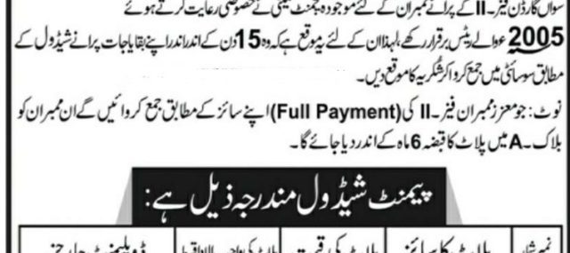 CECHS has intimated the old members of Soan Garden Phase 2 to pay off their outstanding dues within 15 days of the notice in order to maintain their allotment and avail old prices. If a members pays off his due amount in one shot, he will be given possession of his plot in A block of the society within 6 months.
